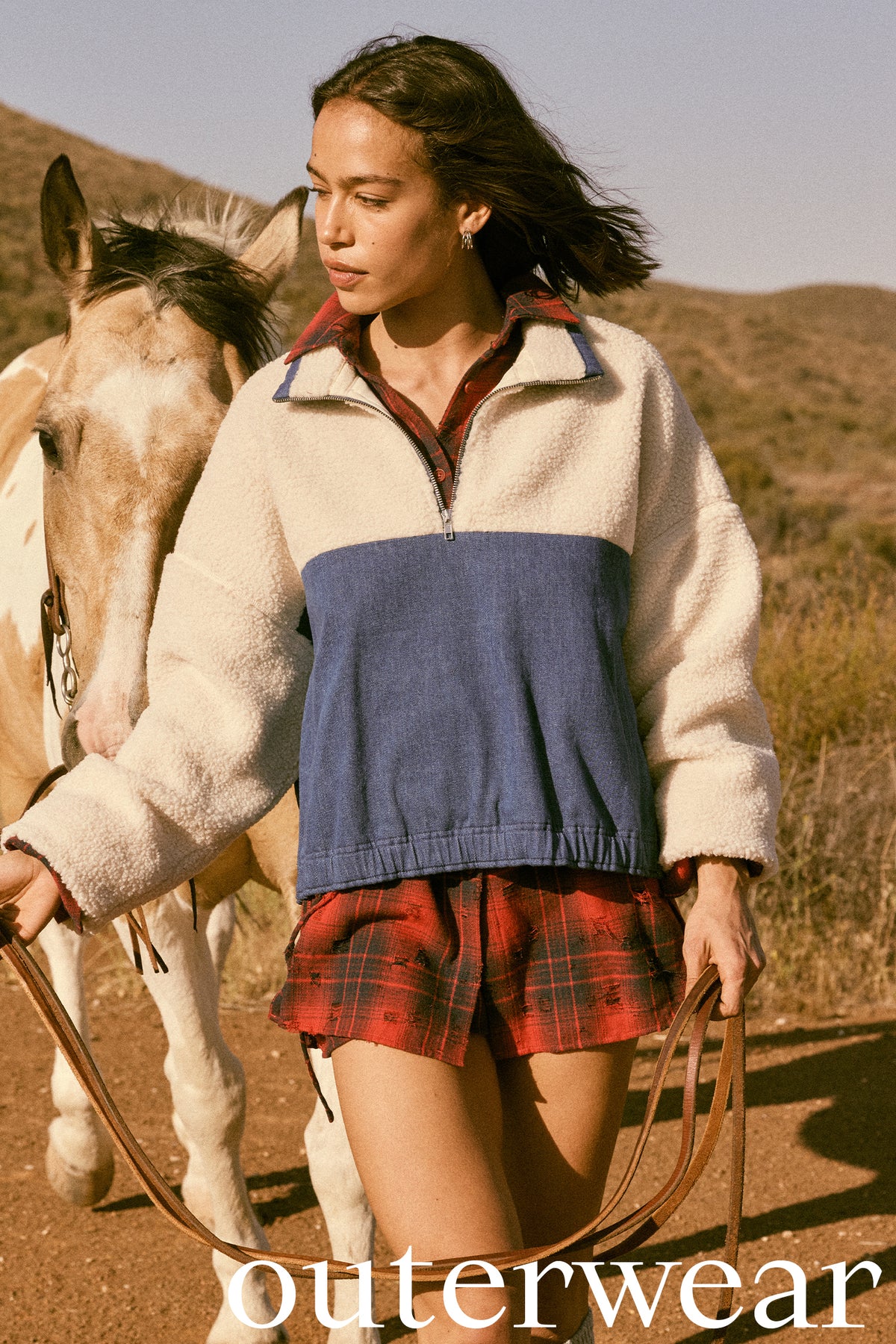 Tongue Tied Bow-Print Fleece Half-Zip Pullover