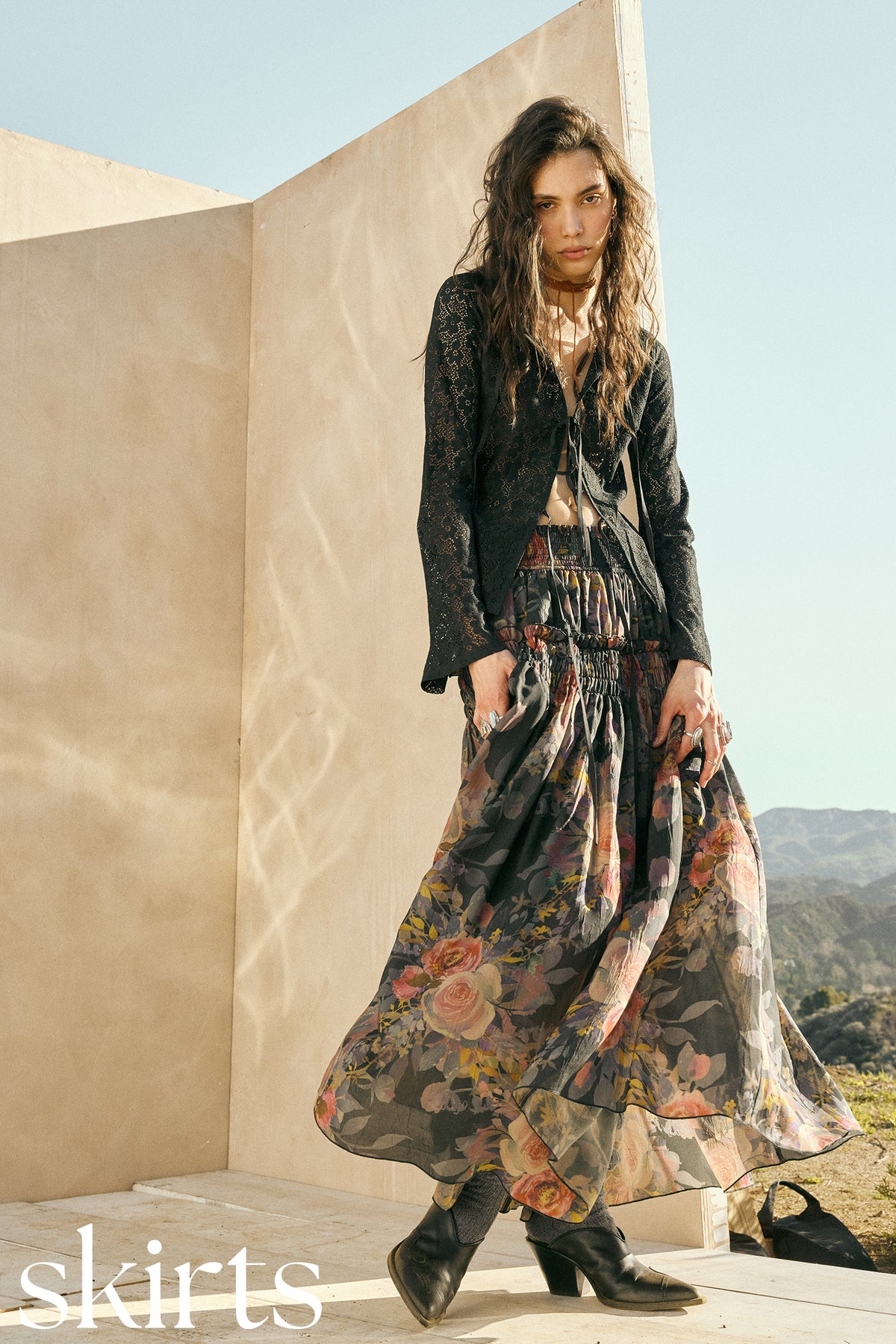 Garden Ramble Smocked Floral Chiffon Maxi Skirt