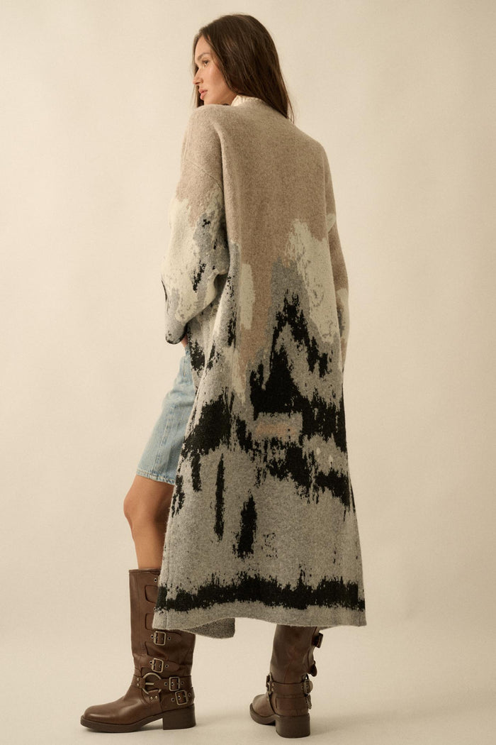 Cross Country Fuzzy-Knit Argyle Pocket Cardigan