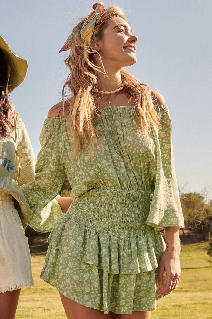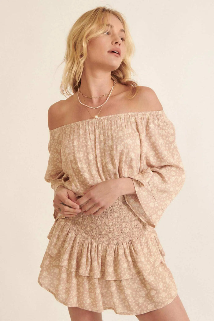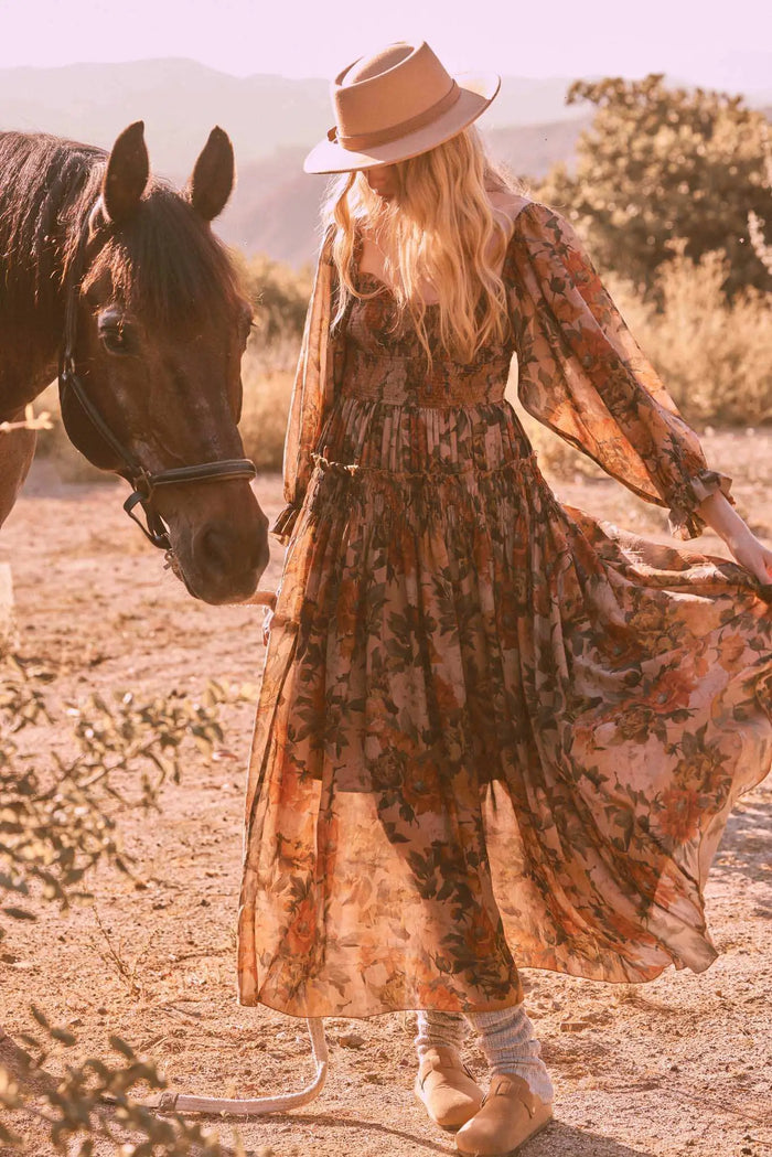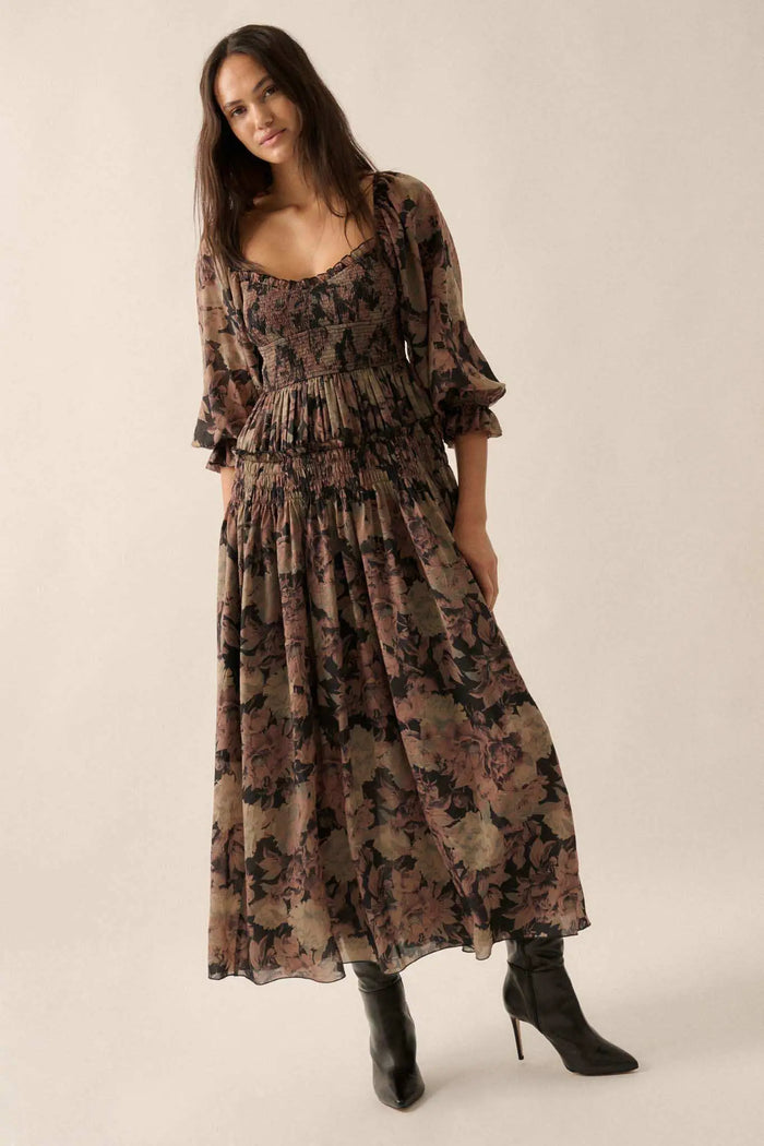Dancing Blooms Smocked Floral Maxi Peasant Dress