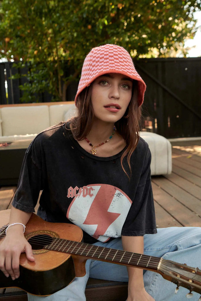 Cherry Love Checker Heart Distressed Graphic Tee