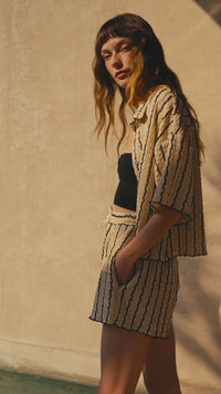 Waves Calling Striped Knit Button-Front Camp Shirt