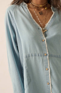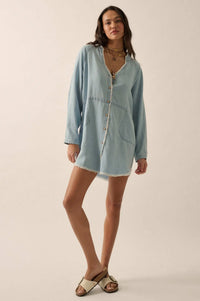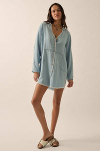 Blue Monday Raw-Edge Denim Mini Shirt Dress