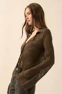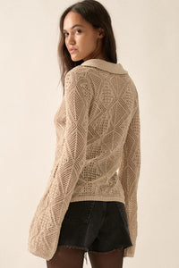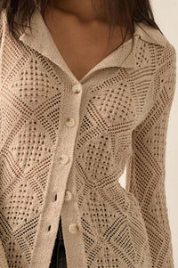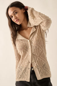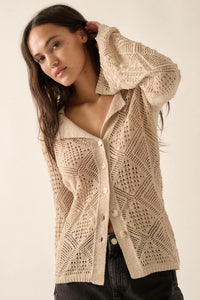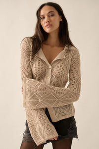 Diamond Dust Geometric Crochet Button-Up Cardigan