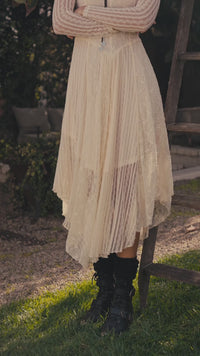 Divine Beauty Paneled Lace Handkerchief Midi Dress