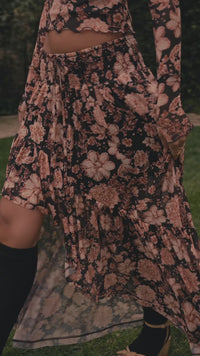 Floral Flourish Mesh High-Low Ruffle Maxi Skirt