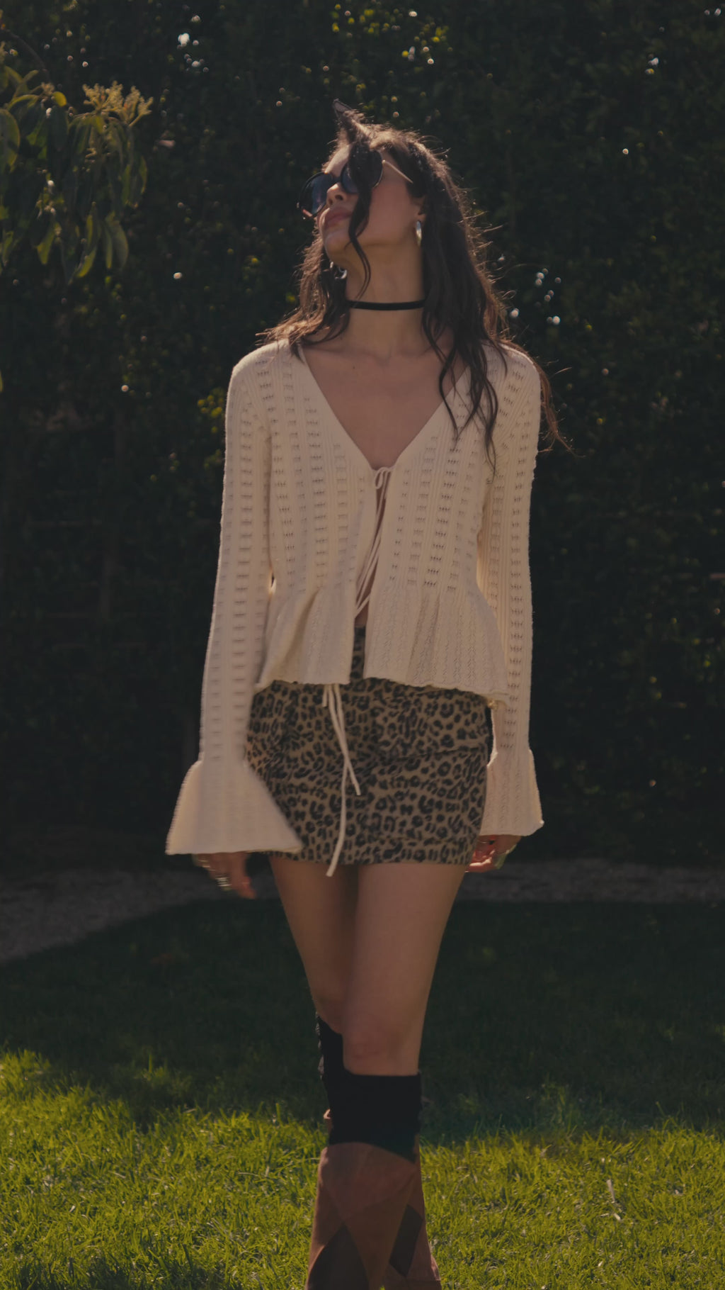 On My Way Pointelle Rib-Knit Peplum Cardigan