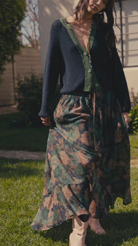 Pretty Potpourri Floral Button-Front Maxi Skirt
