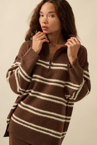 Promise the Label Striped Knit Quarter-Zip Sweater