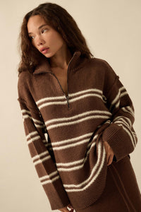 Promise the Label Striped Knit Quarter-Zip Sweater - ShopPromesa