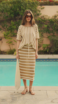 Set Me Free Striped Drawstring Sweater Midi Skirt