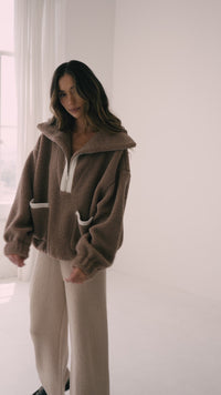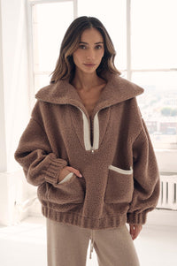 - Solid sherpa fleece pullover jacket.