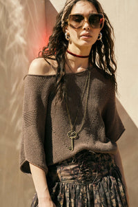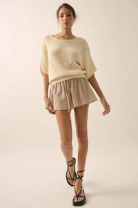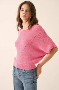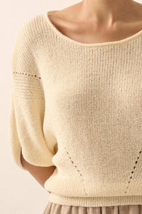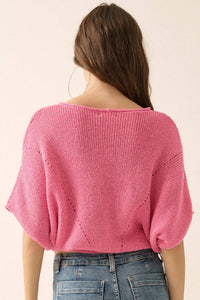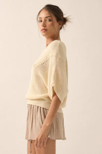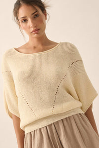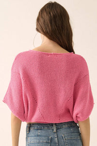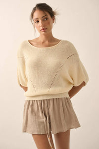 True Self Short-Sleeve Pointelle Rib-Knit Sweater - ShopPromesa