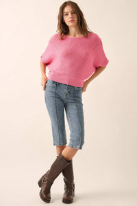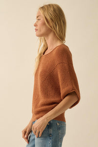 True Self Short-Sleeve Pointelle Rib-Knit Sweater