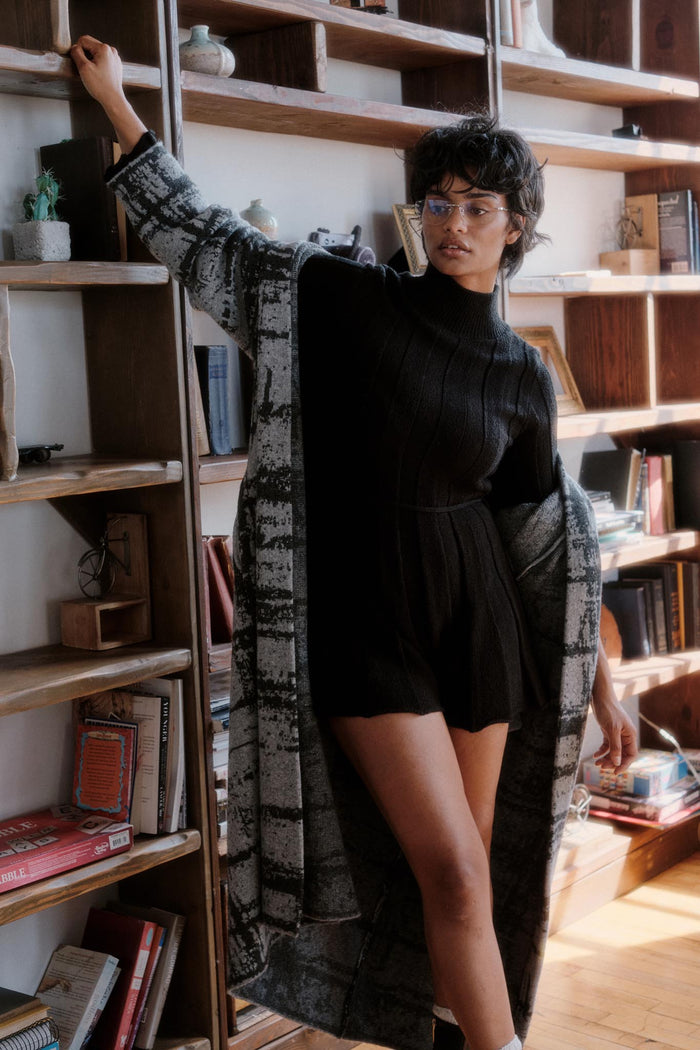 Square One Plaid Jacquard-Knit Duster Cardigan