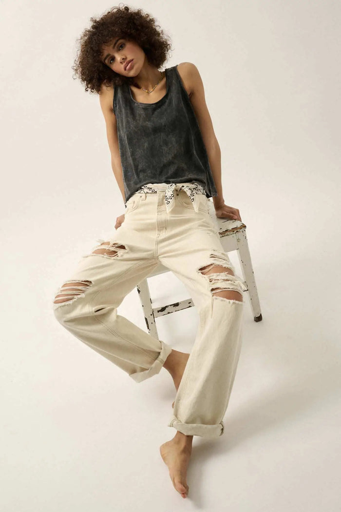 Since 1991 Vintage-Wash Raw-Edge Graphic Tank Top