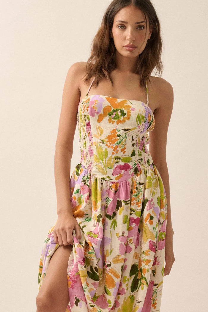 Meadow Garden Floral Gauze Tie-Back Maxi Dress