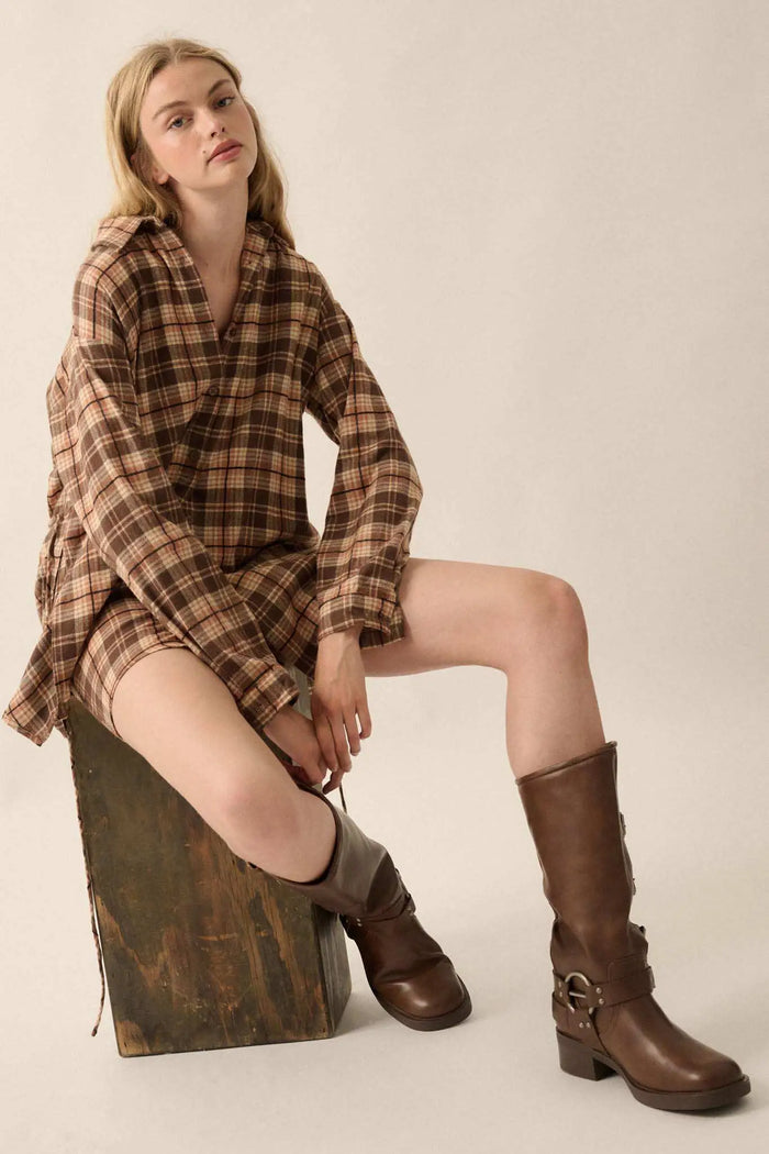 Hearth and Home Plaid Flannel Belted Shirt Romper