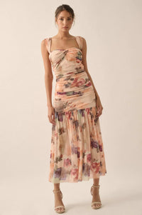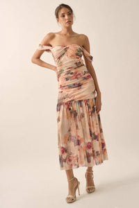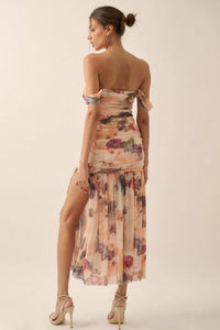 Blushing Blooms Floral Mesh Off-Shoulder Maxi Dress