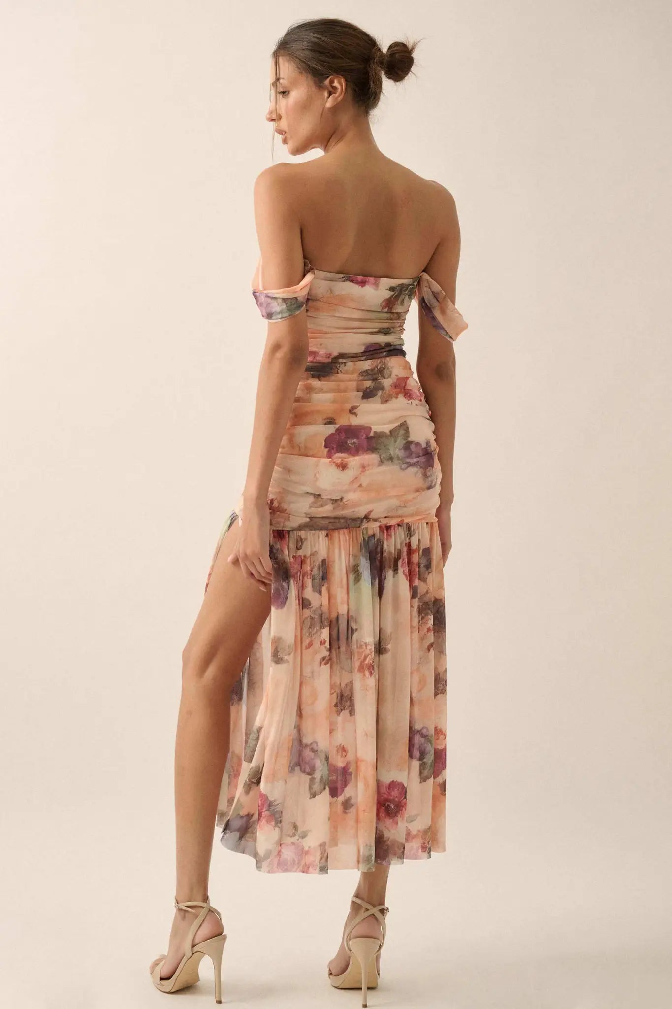 Blushing Blooms Floral Mesh Off-Shoulder Maxi Dress - ShopPromesa