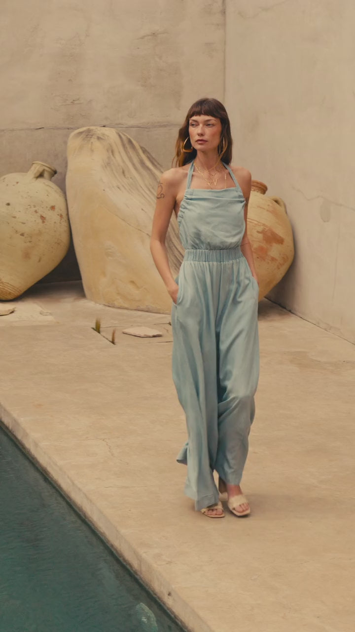 Perfect Skies Denim Wide-Leg Halter Jumpsuit - ShopPromesa