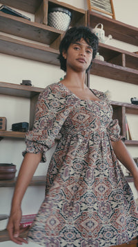 Pure Magic Tapestry Puff-Sleeve Babydoll Mini Dress