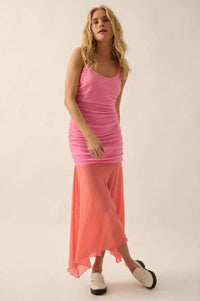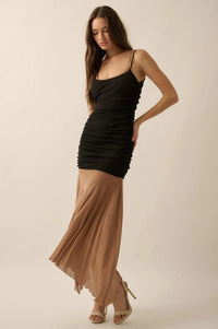 Sheer Beauty Colorblock Mesh Drop-Waist Maxi Dress - ShopPromesa