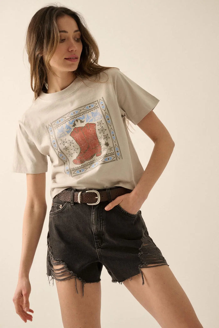 Boot Scootin' Cowboy Boot Chest-Print Graphic Tee