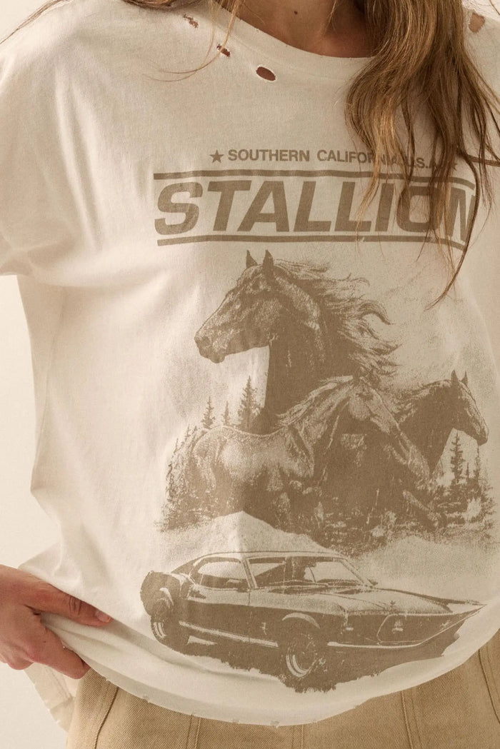 Wild Beauty Distressed Oversize Horse Graphic Tee