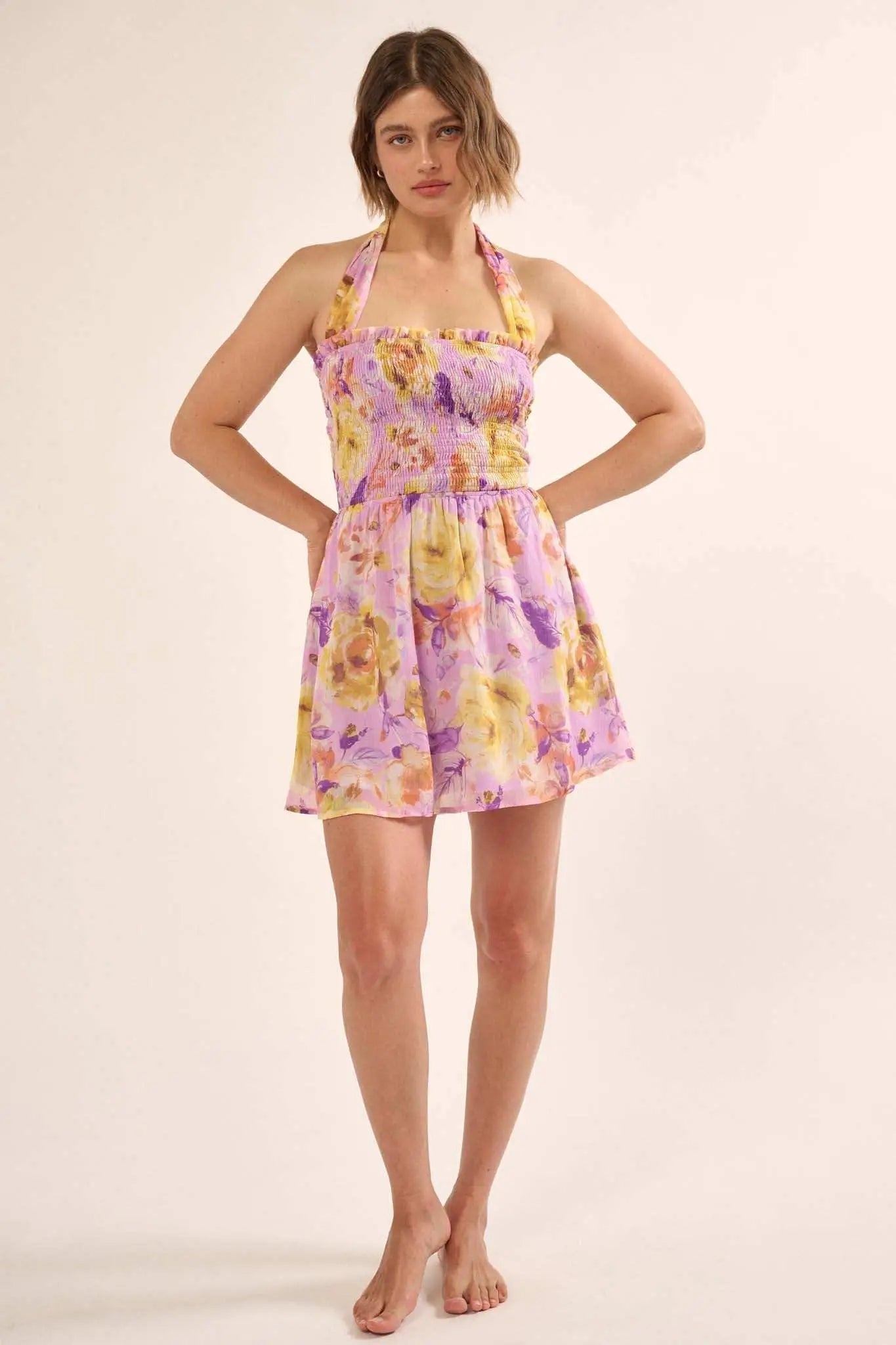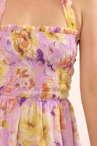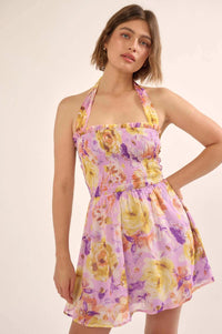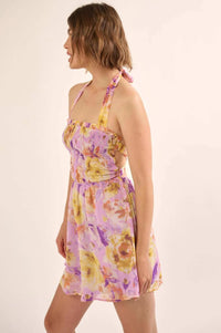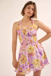 Orchid Skies Floral Chiffon Halter Mini Sundress - ShopPromesa