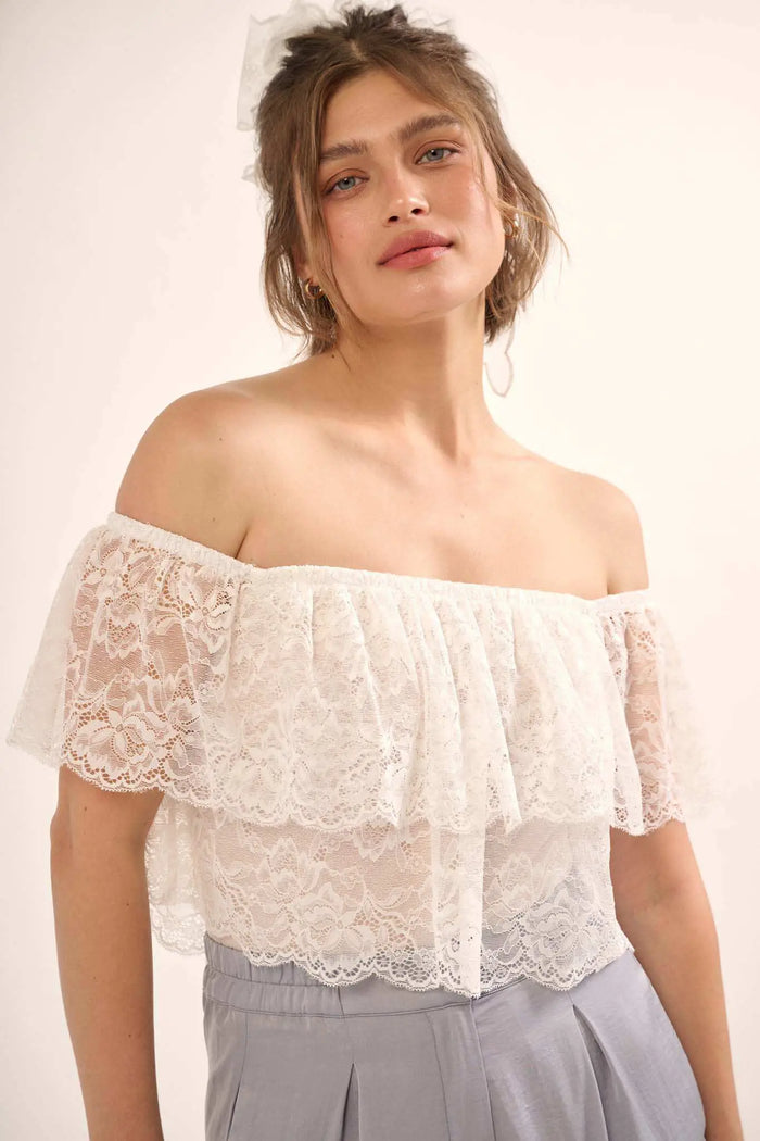 Sweet Sonata Embroidered Lace Cropped Halter Top