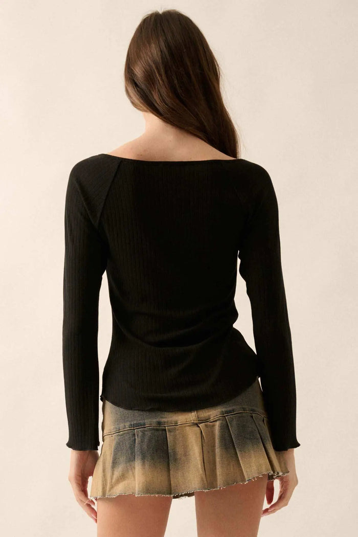 Chill Vibes Rolled-Edge Ribbed Knit Sweater