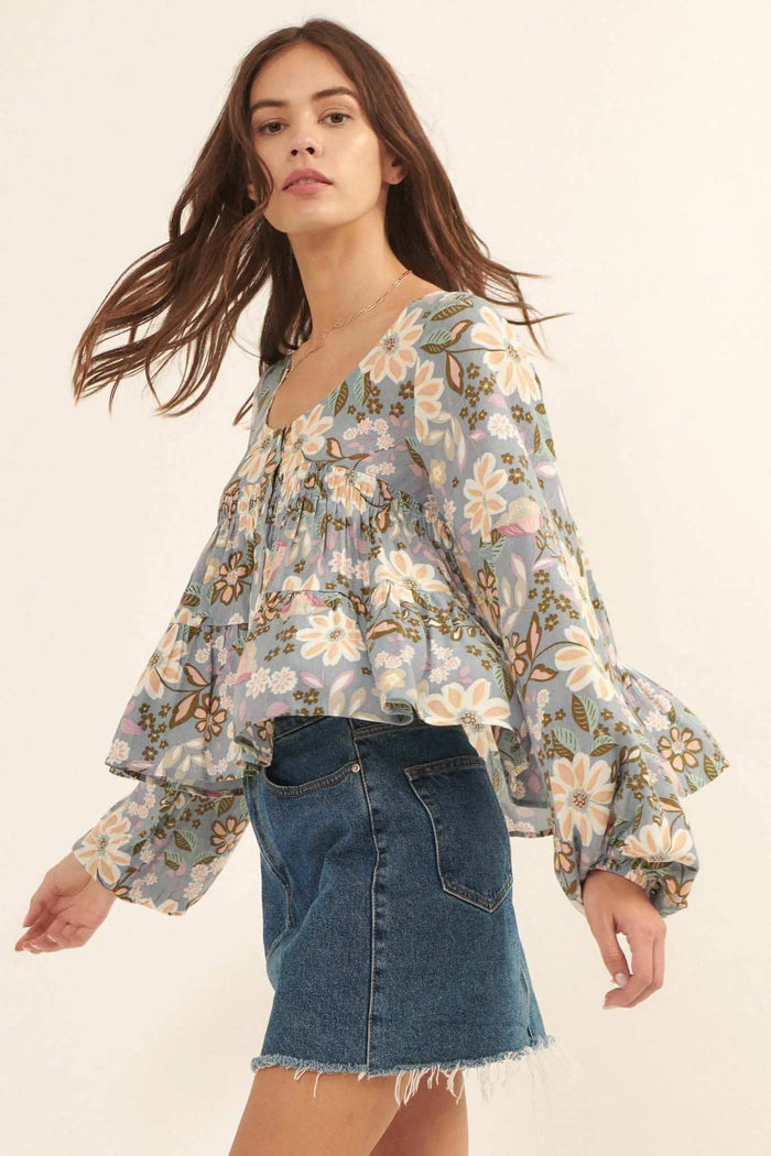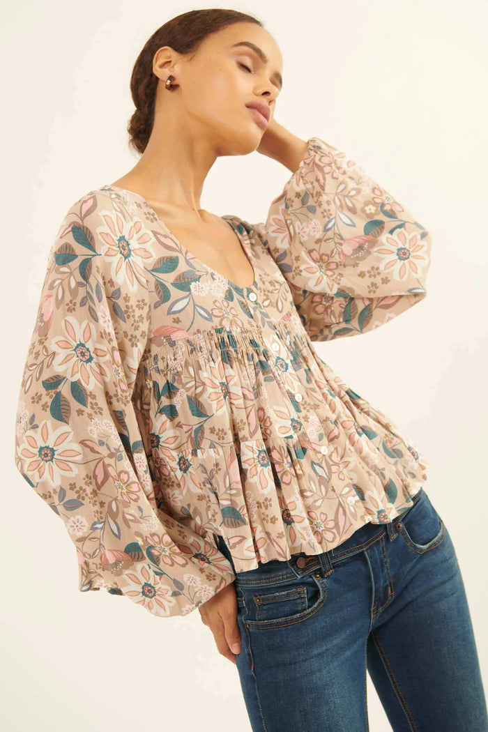 Perfumed Potpourri Smocked Sweetheart Peasant Top