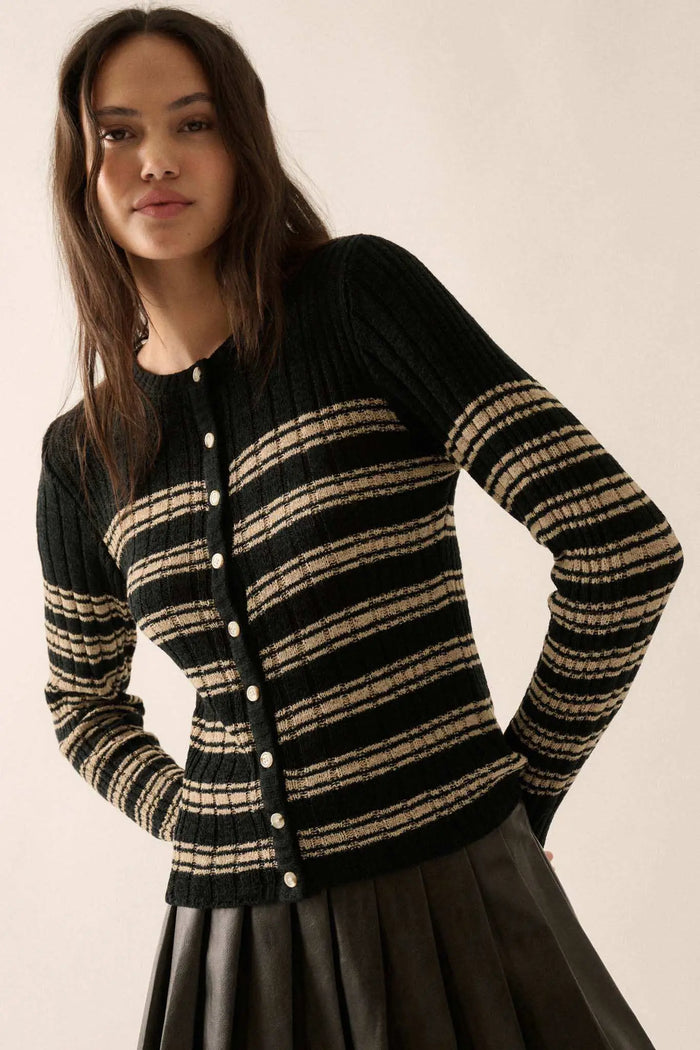 Broad Strokes Striped Jacquard-Knit Cardigan