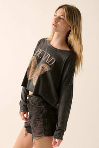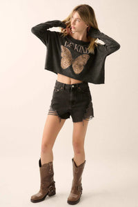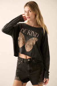 Be Kind Butterfly Cropped Long-Sleeve Graphic Tee - ShopPromesa