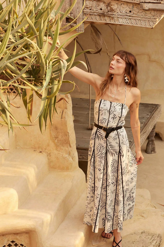 Lost Blossoms Smocked Floral Midi Peasant Dress