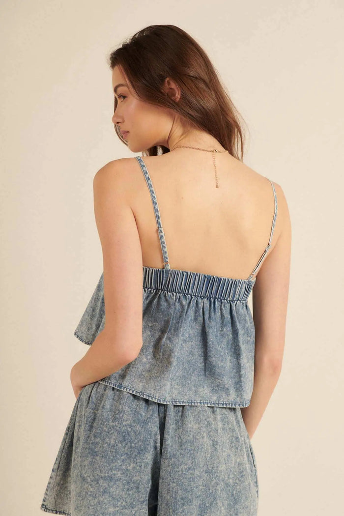 Cannes Coastline Floral Crepe Ruffle Blouse