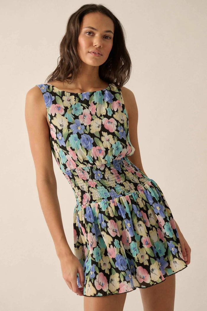 Cannes Coastline Floral Crepe Ruffle Blouse