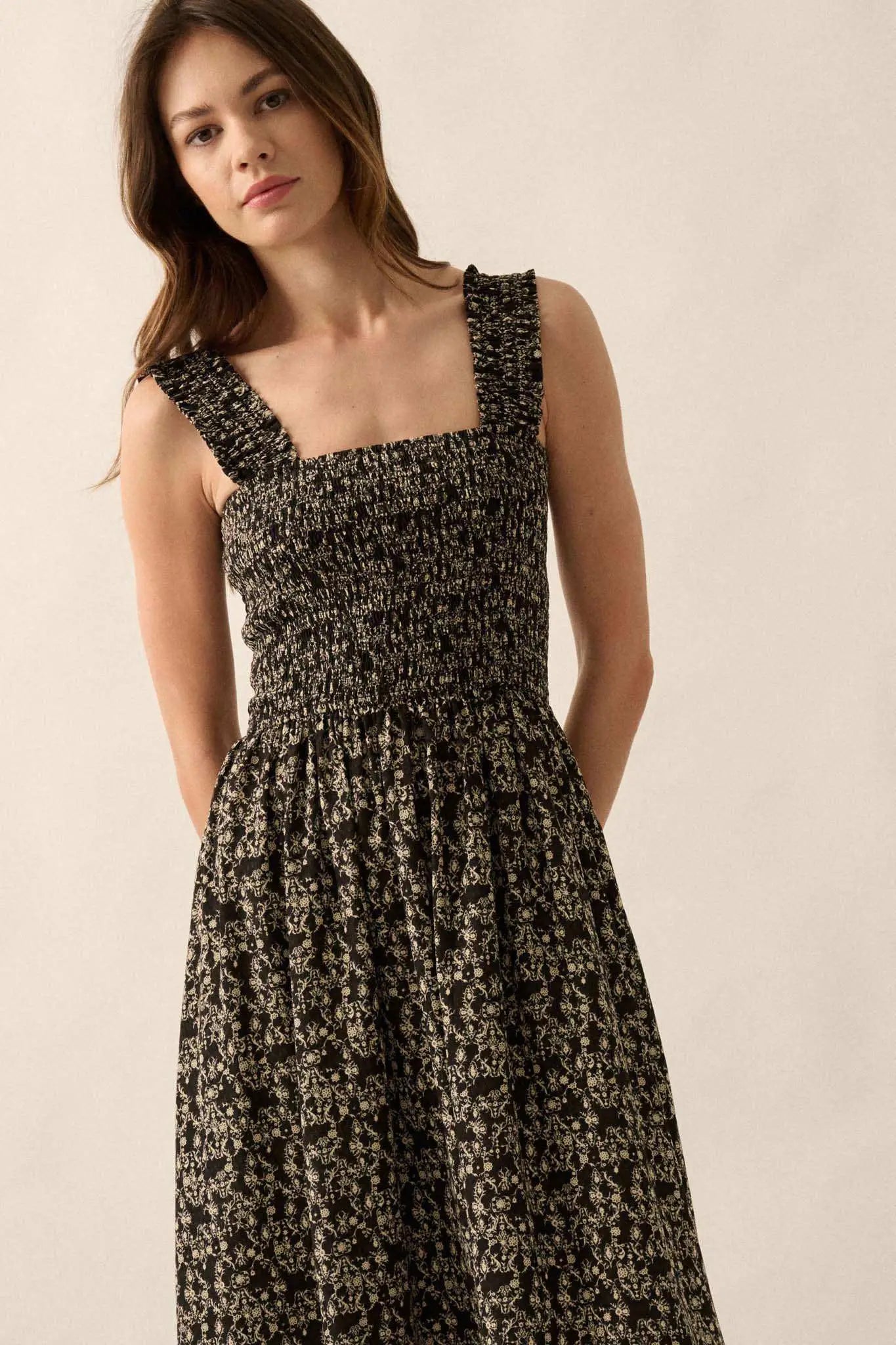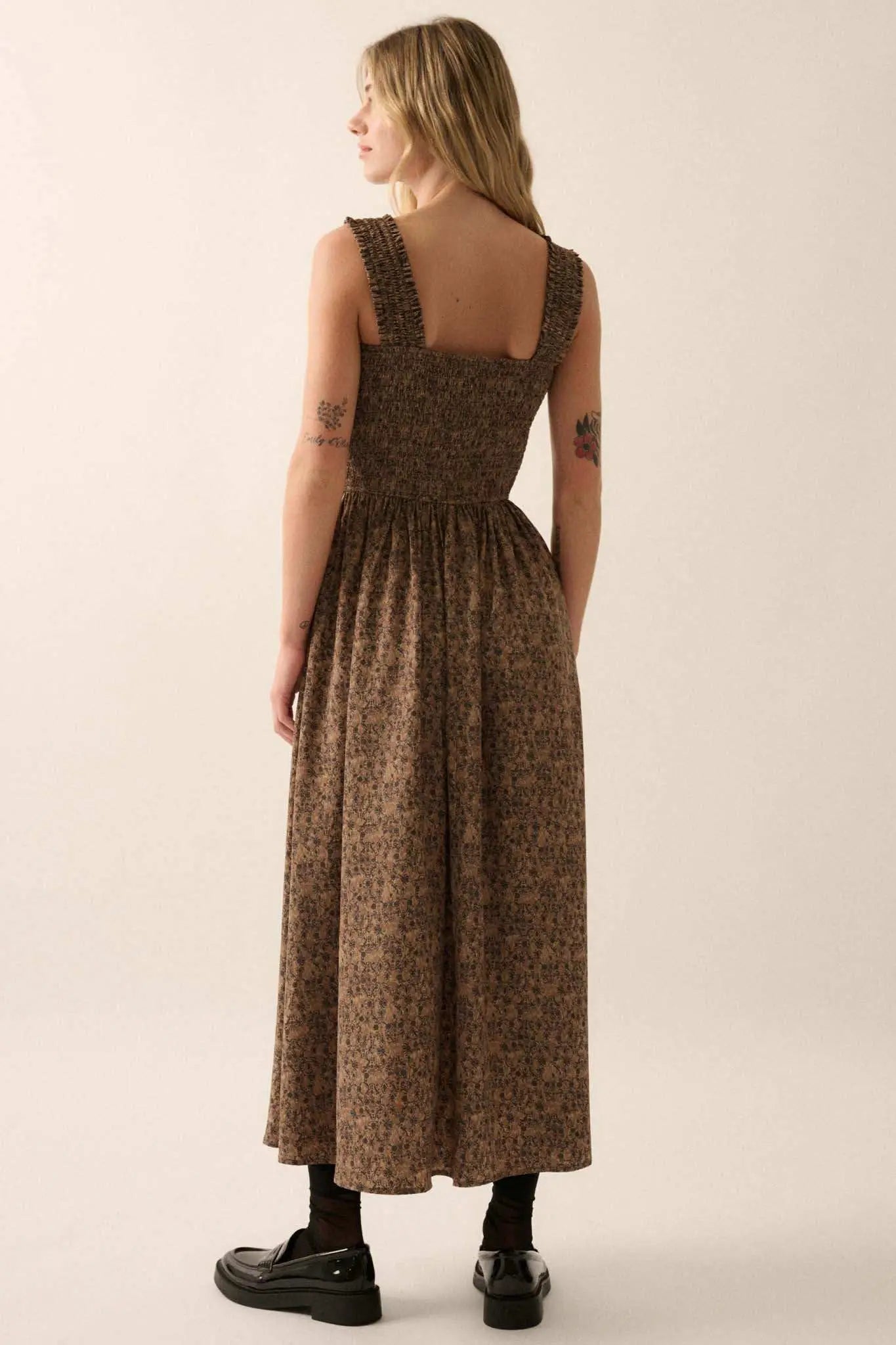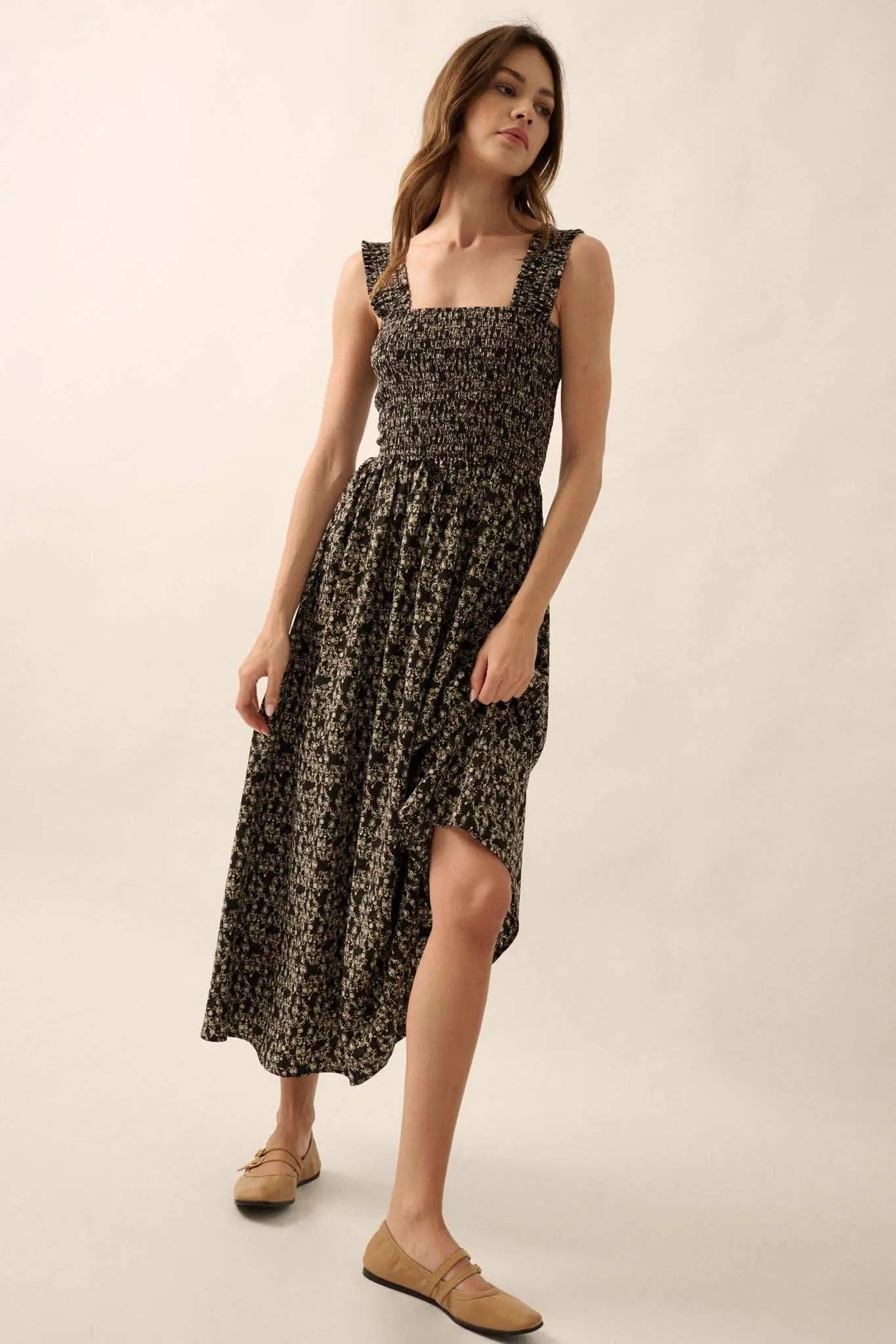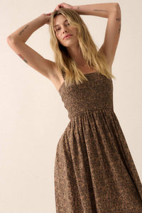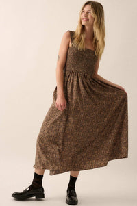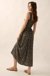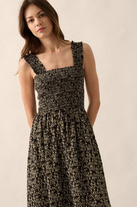 Filigree Flowers Smocked Floral Midi Dress