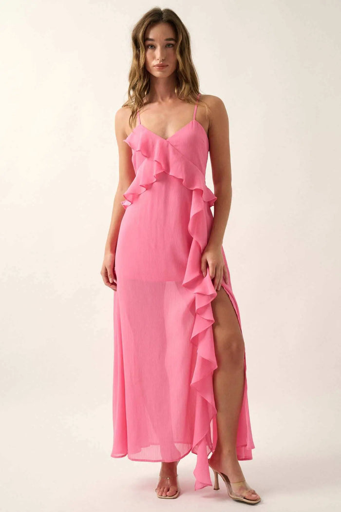 Carefree Spirit Textured Crepe Midi Slip Dress