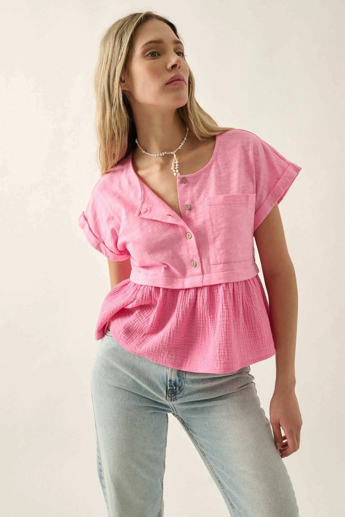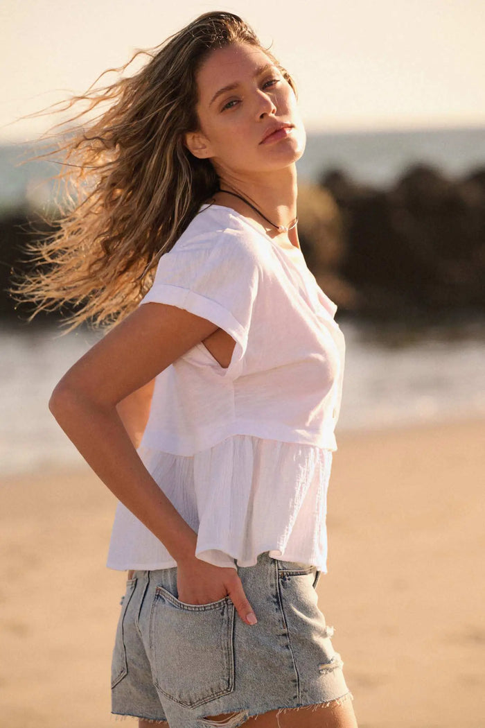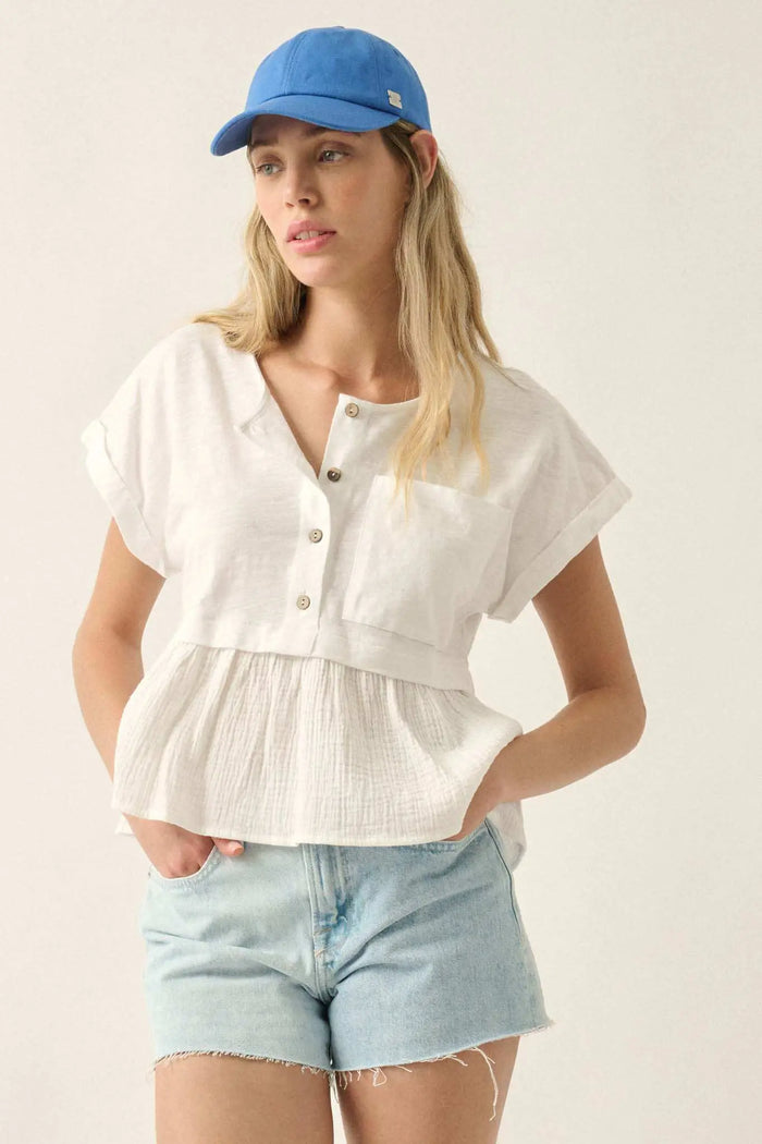 Fresh Start Ruched Cotton Peplum Cami Top