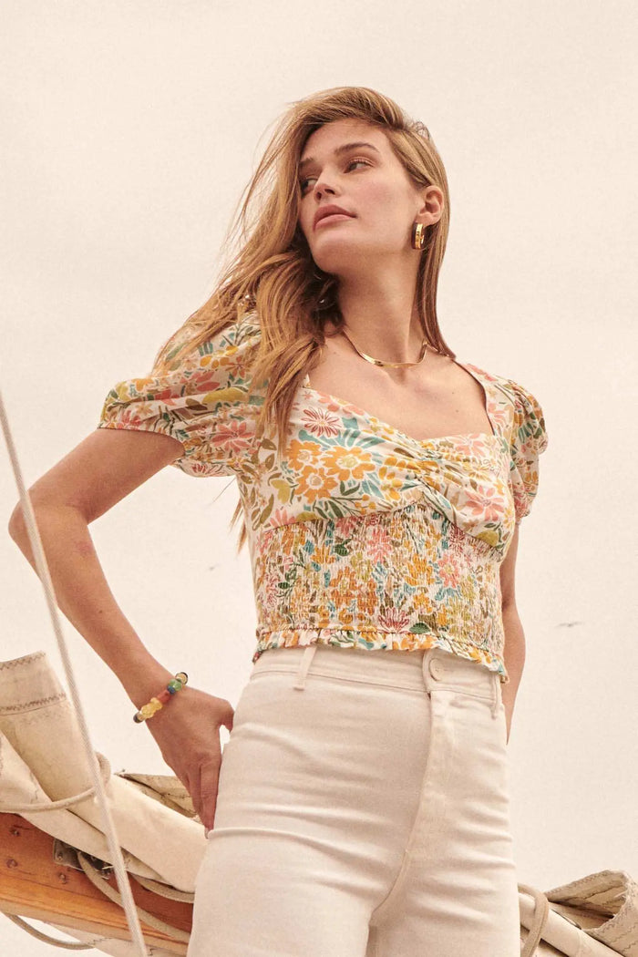 Wildflower Glen Floral Velvet-Trim Maxi Dress