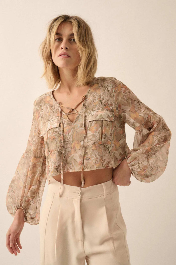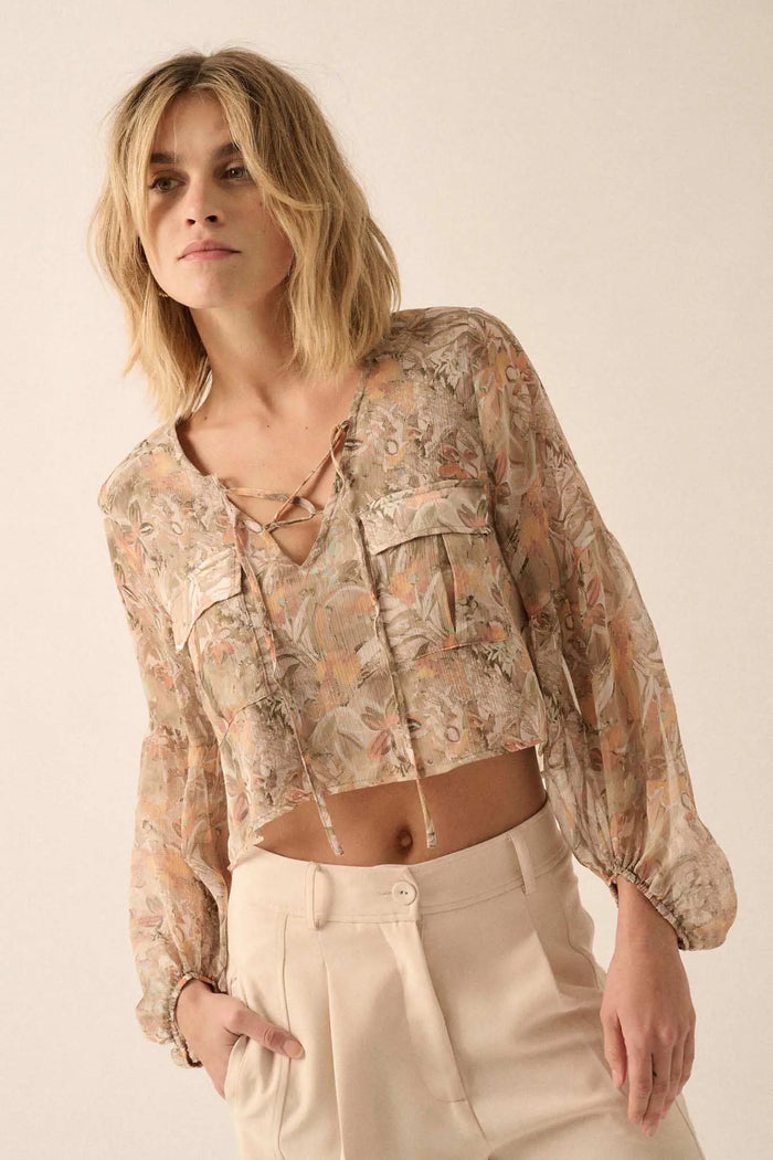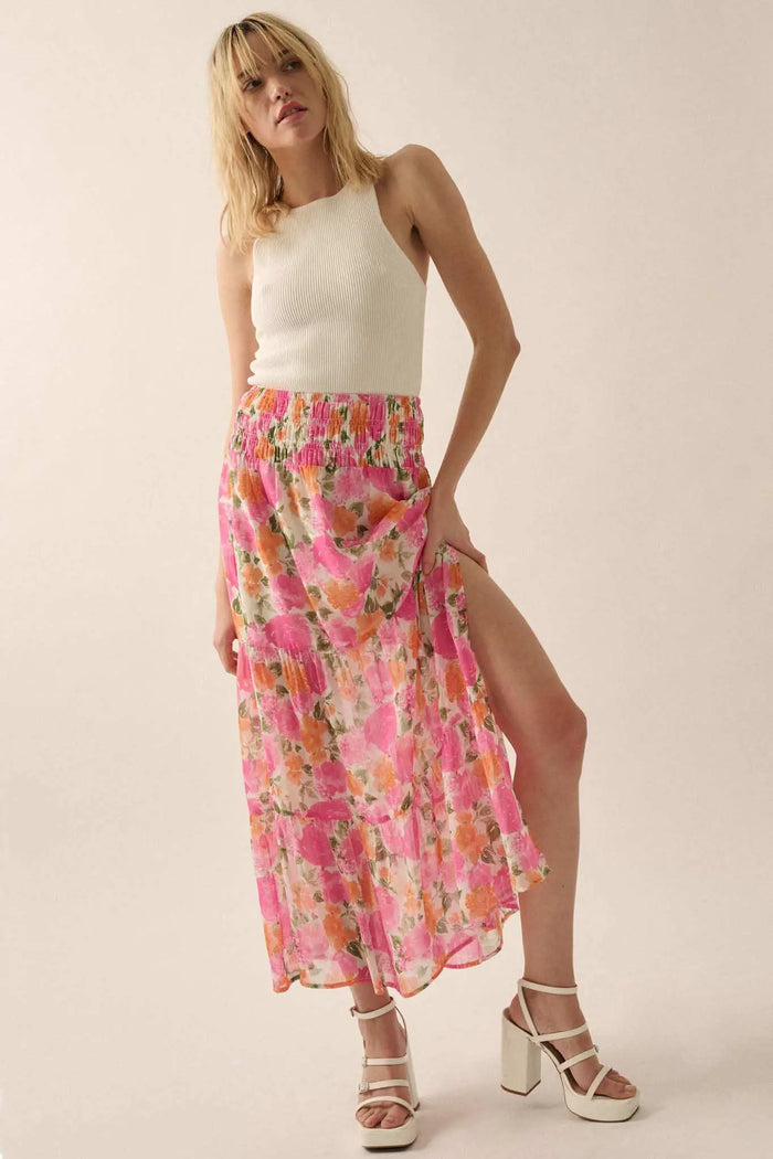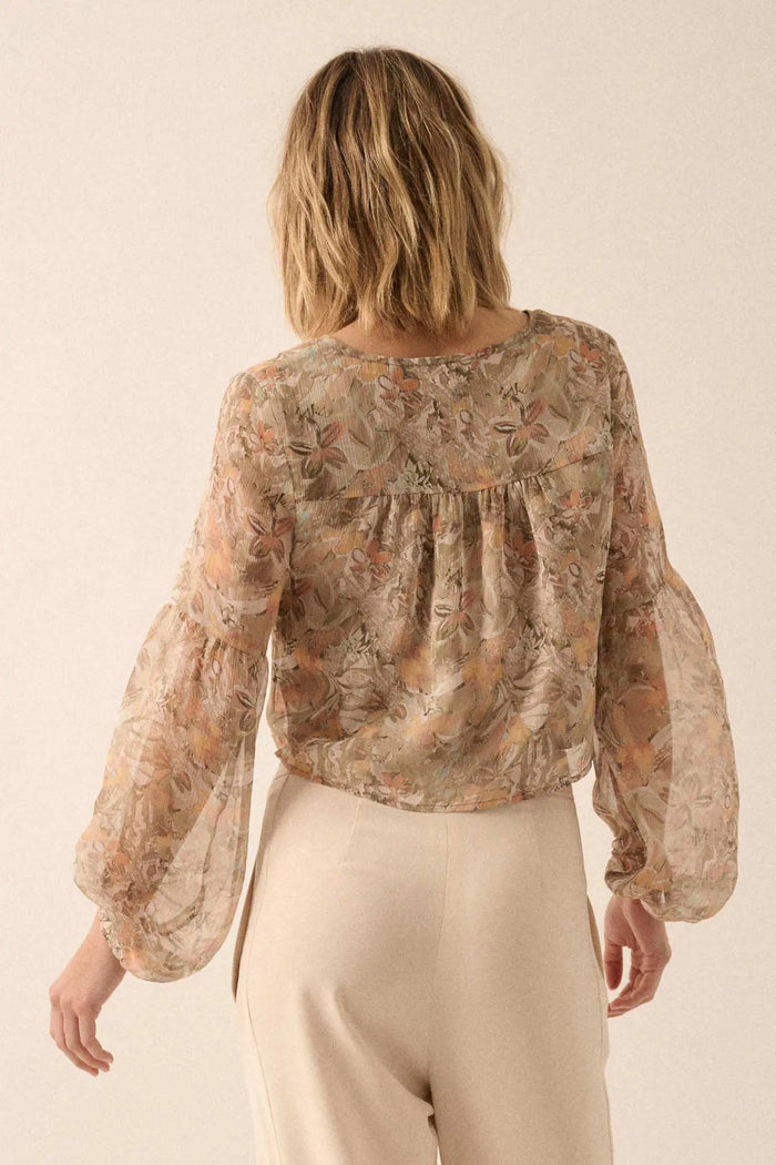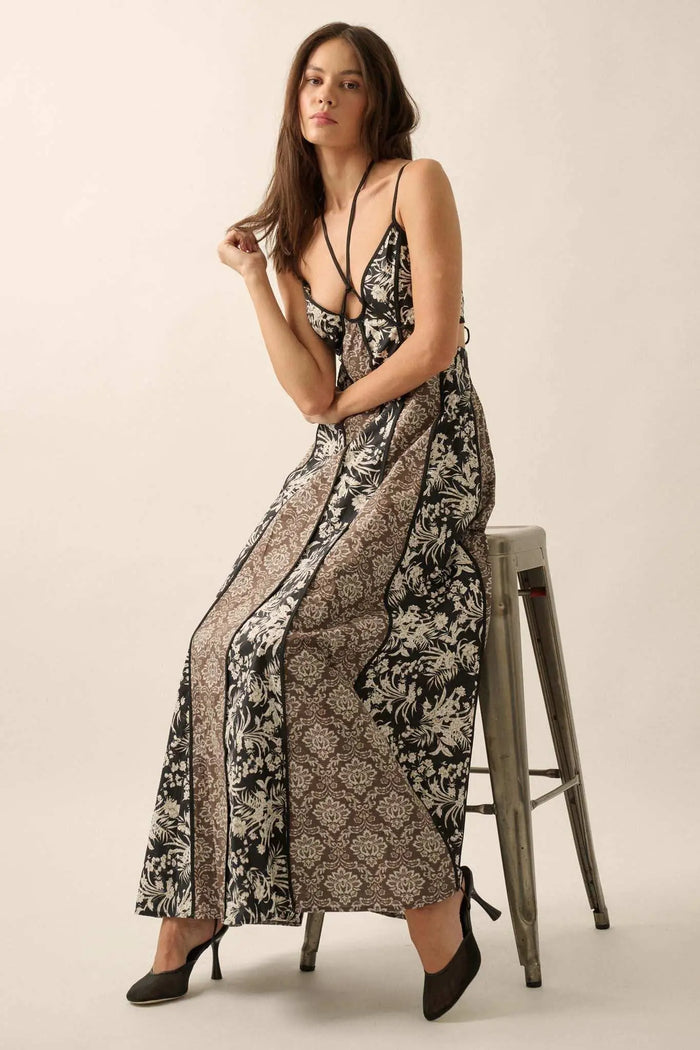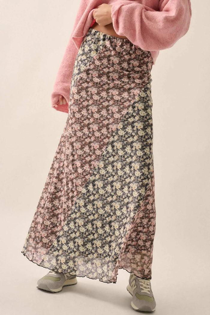 Heritage Blossoms Floral Mesh Mock-Neck Maxi Dress