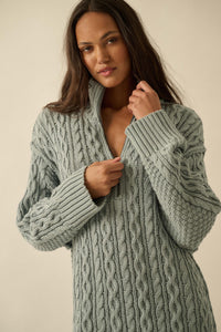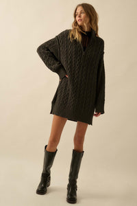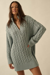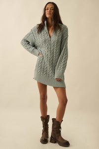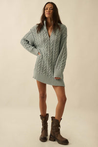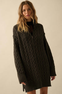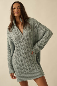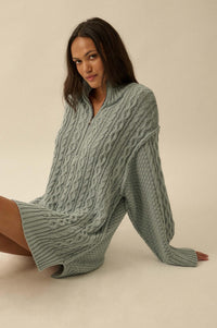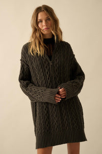 Plot Twist Half-Zip Cable Knit Sweater Dress