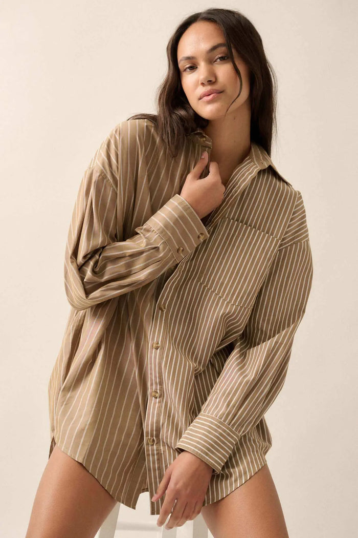 Clock Watcher Cotton Button-Up Belted Shirt Romper