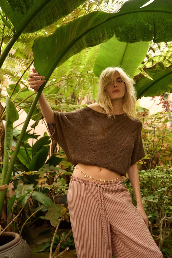 True Self Short-Sleeve Pointelle Rib-Knit Sweater