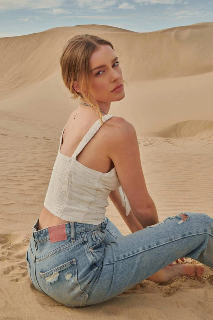 Sunday Vibes Crinkle Cotton Mini Shirt Dress