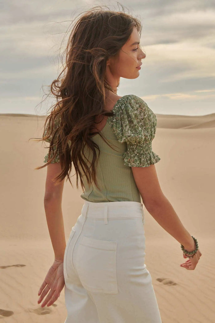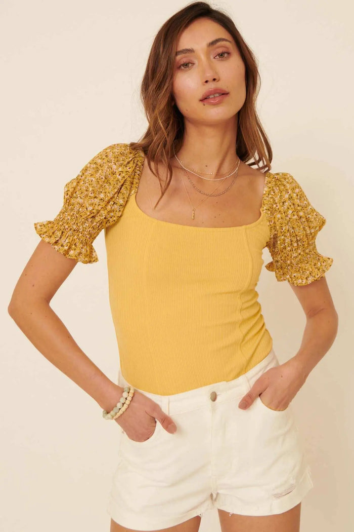 Feeling Fresh Floral Puff-Sleeve Cropped Corset Top