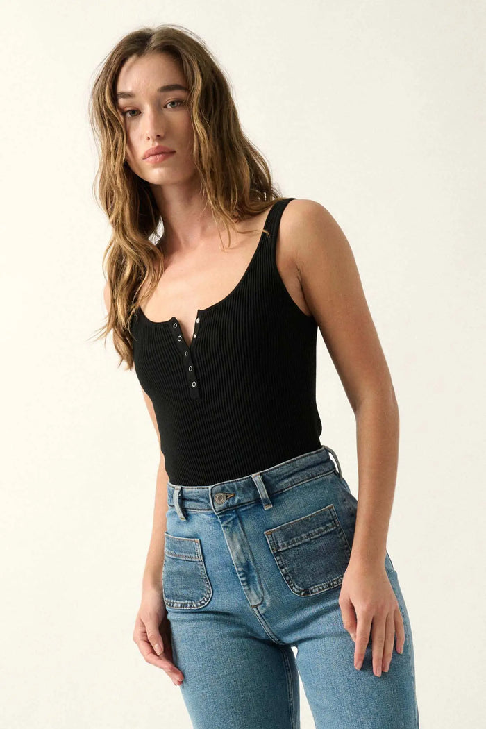 Shaper Fit Scoopneck Rib-Knit Tank Bodysuit