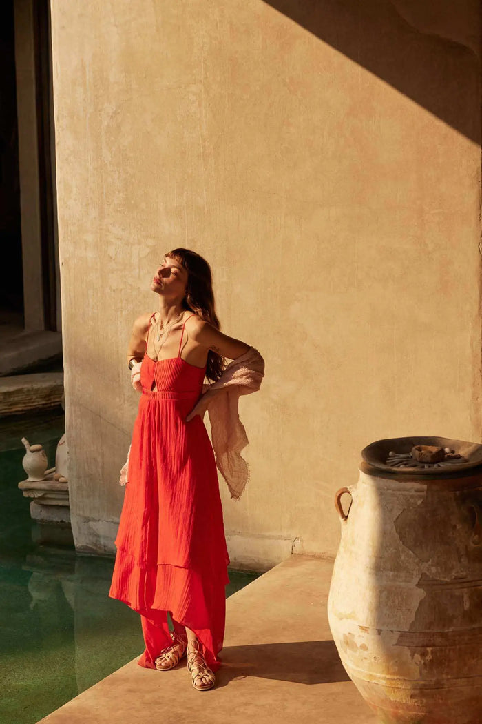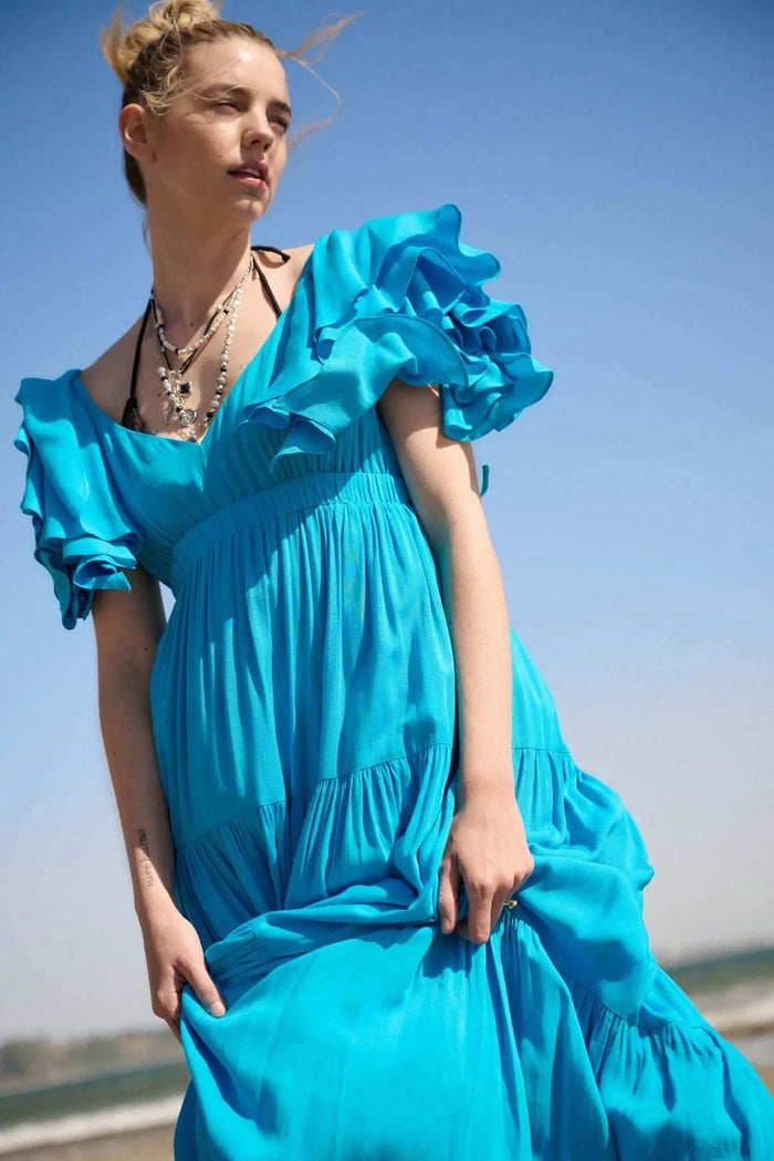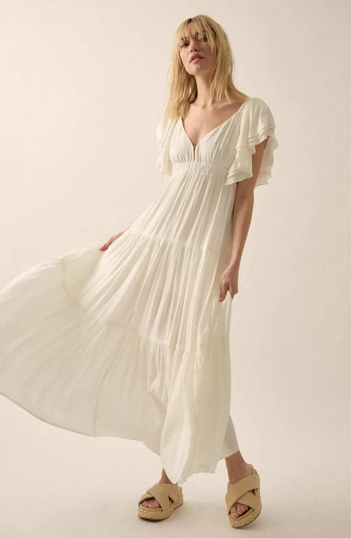 Catch the Wind Ruffle-Sleeve Tiered Maxi Dress